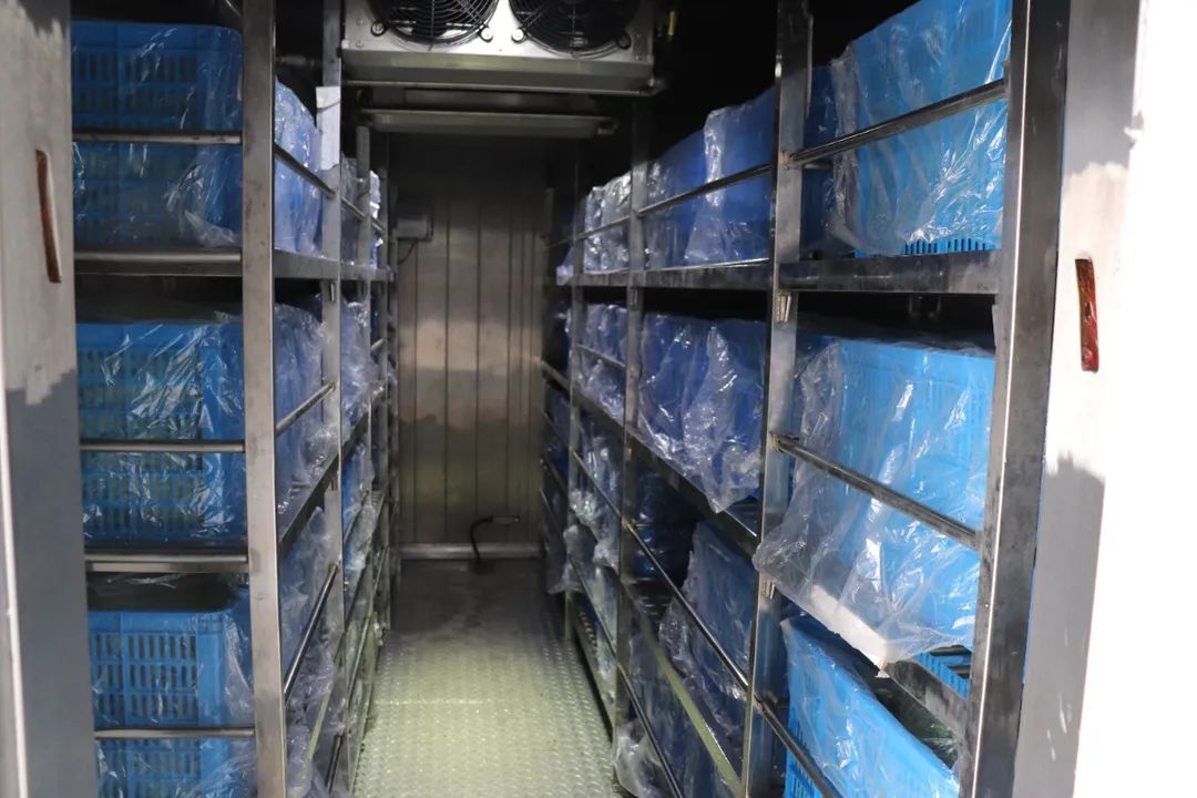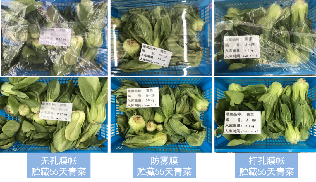 在廠內(nèi)進(jìn)行技術(shù)研發(fā)固然重要,在實(shí)踐中跟蹤驗(yàn)證才能將裝備性能落實(shí)好。在廠內(nèi)完成保鮮試驗(yàn)后,氣調(diào)冷藏集裝箱又馬不停蹄趕往山東壽光開(kāi)展蔬菜基地陸用保鮮試驗(yàn),在北方寒冬季節(jié)里,測(cè)試設(shè)備的應(yīng)用工況,并作為氣調(diào)冷藏集裝箱走向大棚蔬菜保鮮的一次前期基礎(chǔ)性工作,全程跟蹤設(shè)備運(yùn)行及試驗(yàn)情況。2021年1月25日~3月11日,在貯藏45天后,除西蘭花、花椰菜、小白菜外,生菜、菠菜、油麥菜、上海青4種菜品,幾乎仍保持著剛?cè)霂?kù)時(shí)的新鮮狀態(tài),失重率及折損率均不大于10%及15%。能達(dá)到此保鮮效果,也與基地果蔬好的品種與品質(zhì)有關(guān)。